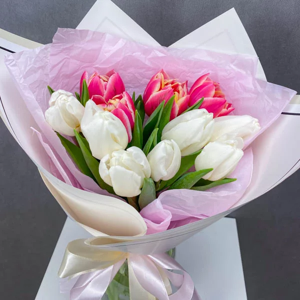 Вперед к мечте! - букет из белых и розовых тюльпанов